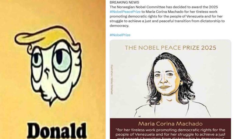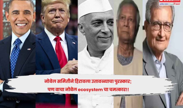 नोबेल समितीने हिरावला उतावळ्याचा पुरस्कार; पण वाचा नोबेल ecosystem चा चमत्कार!!अमेरिकेचे उतावळे अध्यक्ष डोनाल्ड ट्रम्प यांना नोबेल शांतता पुरस्कार मिळाला नाही. त्यांनी पाच - दहा युद्ध थांबविल्याचा दावा केलाRead More.. October 10, 2025