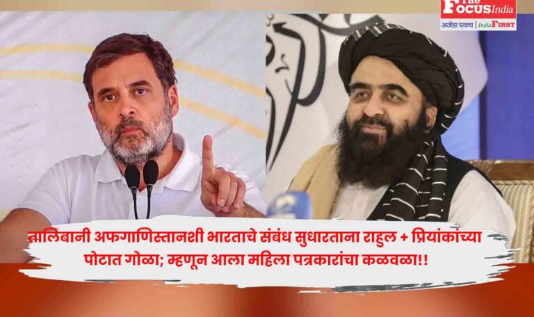 तालिबानी अफगाणिस्तानशी भारताचे संबंध सुधारताना राहुल + प्रियांकांच्या पोटात गोळा; म्हणून आला महिला पत्रकारांचा कळवळा!! तालिबानी अफगाणिस्तानशी भारताचे संबंध सुधारताना राहुल + प्रियांकांच्या पोटात गोळा; म्हणून आला महिला पत्रकारांचा कळवळा!!, असाच प्रकार राजधानी नवी दिल्लीत घडला.Read More.. October 11, 2025
