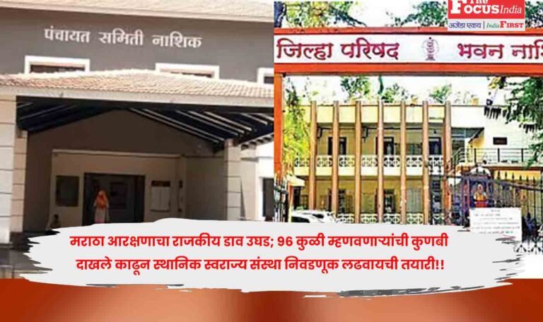 मराठा आरक्षणाचा राजकीय डाव उघड; 96 कुळी म्हणवणाऱ्यांची कुणबी दाखले काढून स्थानिक स्वराज्य संस्था निवडणूक लढवायची तयारी!! मनोज जरांगे यांनी आंदोलन करून मिळवलेल्या मराठा आरक्षणाचा राजकीय डाव आता उघड्यावर आला असून आत्तापर्यंत गावचे राजकारण "सरकार", 96 कुळी, 92 कुळी मराठे म्हणून हाताळणाऱ्या गाव पुढार्यांनी कुणबी दाखले काढून स्थानिक स्वराज्य संस्था निवडणूक लढवायची तयारी चालविल्याचे समोर आले आहे.Read More.. October 15, 2025