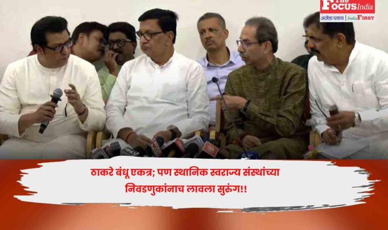 ठाकरे बंधू एकत्र; पण स्थानिक स्वराज्य संस्थांच्या निवडणुकांनाच लावला सुरुंग!!ठाकरे बंधू एकत्र, पण स्थानिक स्वराज्य संस्थांच्या निवडणुकांनाच लावला सुरुंग!!, असला प्रकार आज मुंबईतून दिसून आला. ठाकरे बंधू एकत्र आल्याचा मोठा गाजावाजा माध्यमांनी केला.Read More.. October 15, 2025