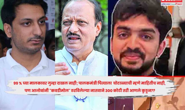 99 % च्या मालकावर गुन्हा दाखल नाही; पालकमंत्री पित्याला घोटाळ्याची म्हणे माहितीच नाही, पण आजोबांनी “कवडीमोल” ठरविलेल्या नातवाने 300 कोटी तरी आणले कुठून?? अमेडिया कंपनीच्या 99 % च्या मालकावर गुन्हा दाखल नाही; पालकमंत्री पित्याला घोटाळ्याची म्हणे माहितीच नाही, पण आजोबांनी "कवडीमोल" ठरविलेल्या नातवाने 300 कोटी तरी आणले कुठूनRead More.. November 7, 2025