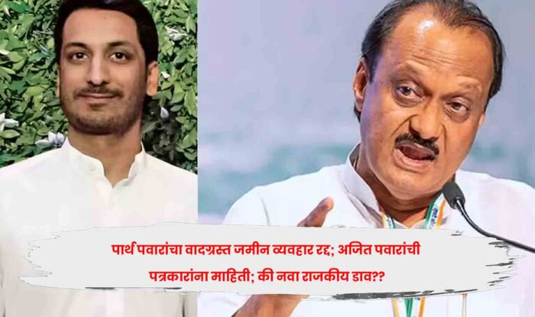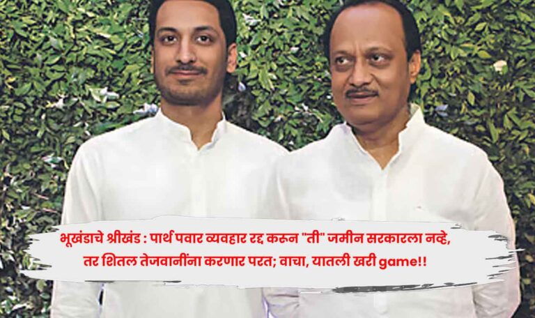 भूखंडाचे श्रीखंड : पार्थ पवार व्यवहार रद्द करून “ती” जमीन सरकारला नव्हे, तर शितल तेजवानींना करणार परत; वाचा, यातली खरी game!! पुण्याच्या कोरेगाव पार्क / कोंढव्यातील 300 कोटींची जमीन खरेदी करून पूर्ण अडचणीत आल्यानंतर उपमुख्यमंत्री अजित पवार यांनी संबंधित व्यवहार रद्द झाल्याची माहिती पत्रकारांना दिली.Read More.. November 8, 2025