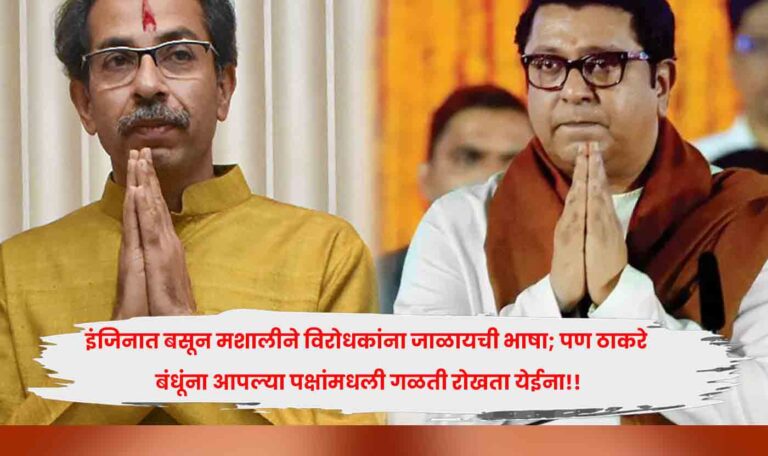 इंजिनात बसून मशालीने विरोधकांना जाळायची भाषा; पण ठाकरे बंधूंना आपल्या पक्षांमधली गळती रोखता येईना!! इंजिनात बसून मशालीने विरोधकांना जाळायची भाषा; पण ठाकरे बंधूंना आपल्या पक्षांमधली गळती रोखता येईना!!, अशी अवस्था मुंबईत झाली आहे.Read More.. January 11, 2026