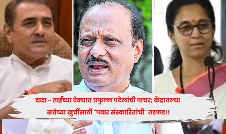 दादा – ताईंच्या ऐक्यात प्रफुल्ल पटेलांची पाचर; केंद्रातल्या सत्तेच्या खुर्चीसाठी “पवार संस्कारितांची” तडफड!! दादा - ताईंच्या ऐक्यात प्रफुल्ल पटेलांची पाचर; केंद्रातल्या सत्तेच्या खुर्चीसाठी "पवार संस्कारितांची" तडफड!!, हेच राजकीय वास्तव चित्र प्रफुल्ल पटेल यांच्या मुलाखतीतून समोर आले.Read More.. January 11, 2026