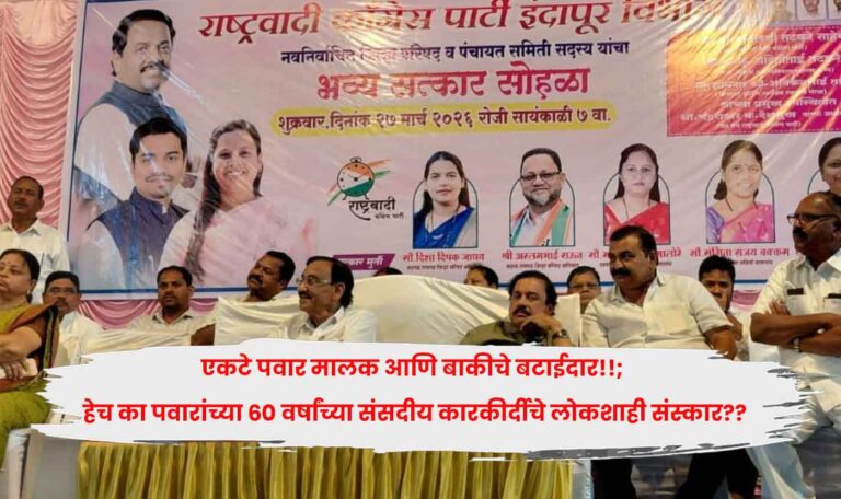 एकटे पवार मालक आणि बाकीचे बटाईदार!!; हेच का पवारांच्या 60 वर्षांच्या संसदीय कारकीर्दीचे लोकशाही संस्कार?? एकटे पवार मालक आणि बाकीचे बटाईदार!!; हेच का पवारांच्या 60 वर्षांच्या संसदीय कारकीर्दीचे लोकशाही संस्कार??, असा सवाल विचारायची वेळ आमदार रोहित पवारांच्या एका ट्विटमुळे आली.Read More.. March 30, 2026