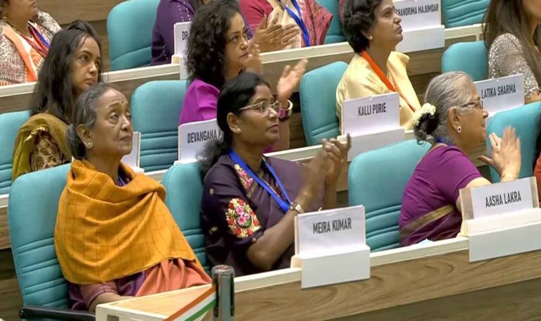 33 % महिला आरक्षणाला विरोध नसल्याचे सांगताना विरोधकांची लोकसभेत दमछाक; अडकले मोदींनी टाकलेल्या पेचात!! 33 % महिला आरक्षणाला आमचा विरोध नाही असे सांगताना विरोधकांची लोकसभेत दमछाक; अडकले पंतप्रधान नरेंद्र मोदींनी टाकलेल्या पेचात!!, असे राजकीय वास्तव चित्र आज लोकसभेतून समोर आले.Read More.. April 16, 2026