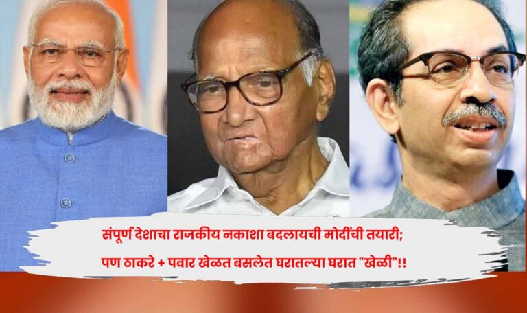 संपूर्ण देशाचा राजकीय नकाशा बदलायची मोदींची तयारी; पण ठाकरे + पवार खेळत बसलेत घरातल्या घरात “खेळी”!! पंतप्रधान नरेंद्र मोदींची संपूर्ण देशाचा राजकीय नकाशा बदलायची तयारी; पण ठाकरे + पवार खेळत बसलेत घरातल्या घरात "खेळी"!!,Read More.. April 15, 2026