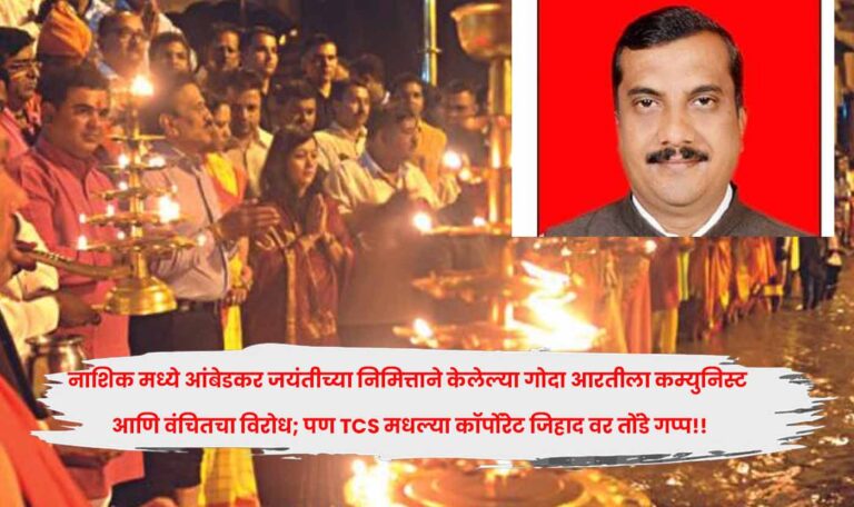 नाशिक मध्ये आंबेडकर जयंतीच्या निमित्ताने केलेल्या गोदा आरतीला कम्युनिस्ट आणि वंचितचा विरोध; पण TCS मधल्या कॉर्पोरेट जिहाद वर तोंडे गप्प!! नाशिक मध्ये आंबेडकर जयंतीच्या निमित्ताने गोदावरी आरती केली, तर त्या उपक्रमाला कम्युनिस्टांनी आणि वंचित बहुजन आघाडीने जोरदार विरोध करून पाहिला. शेवटी पोलीस बंदोबस्तात आंबेडकर जयंतीची गोदावरी महाआरती करावी लागली.Read More.. April 15, 2026