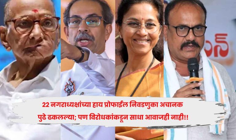 22 नगराध्यक्षांच्या हाय प्रोफाईल निवडणुका अचानक पुढे ढकलल्या; पण विरोधकांकडून साधा आवाजही नाही!! महाराष्ट्राच्या निवडणूक आयोगाने वेगवेगळी कायदेशीर कारणे देऊन महाराष्ट्रातल्या 22 नगराध्यक्षांच्या हाय प्रोफाईल निवडणुका अचानक पुढे ढकलल्या.Read More.. December 1, 2025