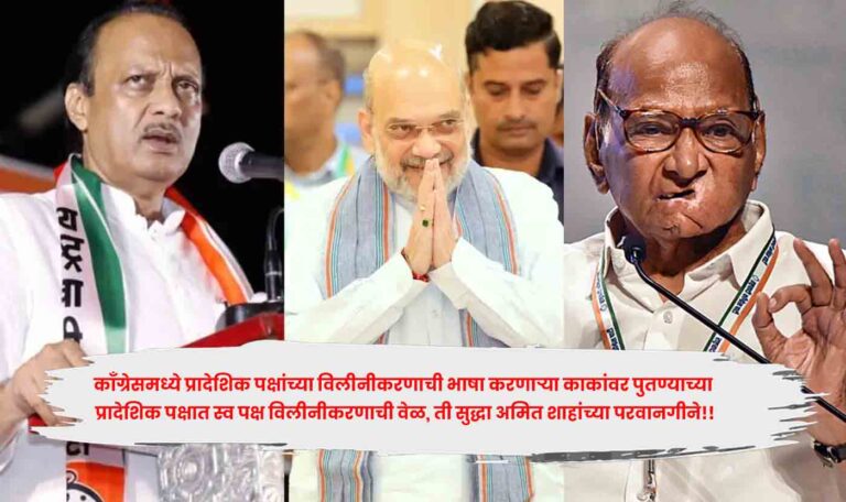 काँग्रेसमध्ये प्रादेशिक पक्षांच्या विलीनीकरणाची भाषा करणाऱ्या काकांवर पुतण्याच्या प्रादेशिक पक्षात स्व पक्ष विलीनीकरणाची वेळ, ती सुद्धा अमित शाहांच्या परवानगीने!! काँग्रेसमध्ये प्रादेशिक पक्षांच्या विलीनीकरण्याची भाषा करणाऱ्या शरद पवारांवर पुतण्याच्या प्रादेशिक पक्षात स्व पक्ष विलीन करण्याची वेळ आली, ती सुद्धा अमित शहांच्या परवानगीने!! अशी राजकीय परिस्थिती शरद पवारांवर आज ओढवली.Read More.. December 19, 2025