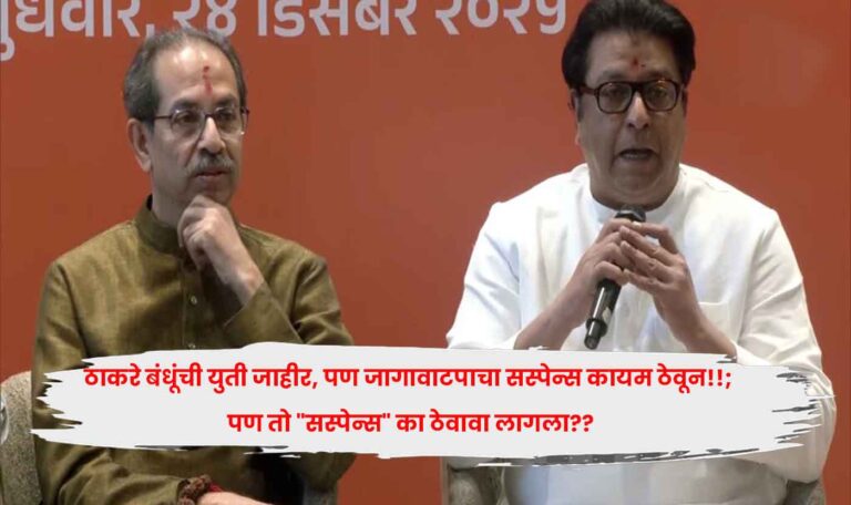 ठाकरे बंधूंची युती जाहीर, पण जागावाटपाचा सस्पेन्स कायम ठेवून!!; पण तो “सस्पेन्स” का ठेवावा लागला??नाशिक : महाराष्ट्रात बहुप्रतिक्षित अशी ठाकरे बंधूंची युती आज जाहीर झाली, पण दोघांनीही जागावाटपाचा सस्पेन्स कायम ठेवला. युती जाहीर करण्यापूर्वी उद्धव ठाकरे मातोश्रीतून निघून राज […]Read More.. December 24, 2025