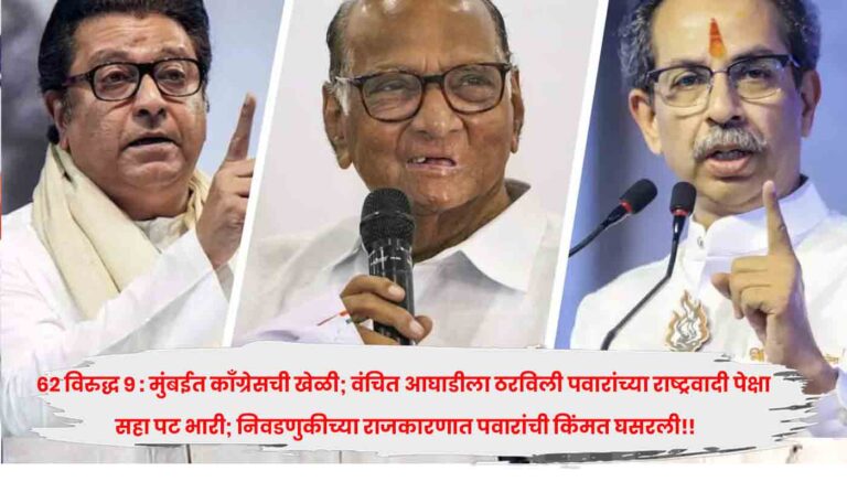 पवारांच्या राजकीय शिष्यानेच राष्ट्रवादीची सोंगटी ढकलली मनसेच्या गोटात!! मुंबईसह महाराष्ट्रातल्या महापालिका निवडणुकीमध्ये शरद पवारांच्या राष्ट्रवादी काँग्रेसची अवस्था एखाद्या लटकत्या खेळण्यासारखी झाली. काँग्रेसने शरद पवारांच्या राष्ट्रवादीला वंचित बहुजन आघाडीच्या पेक्षा सहा पट कमी लेखले.Read More.. December 29, 2025