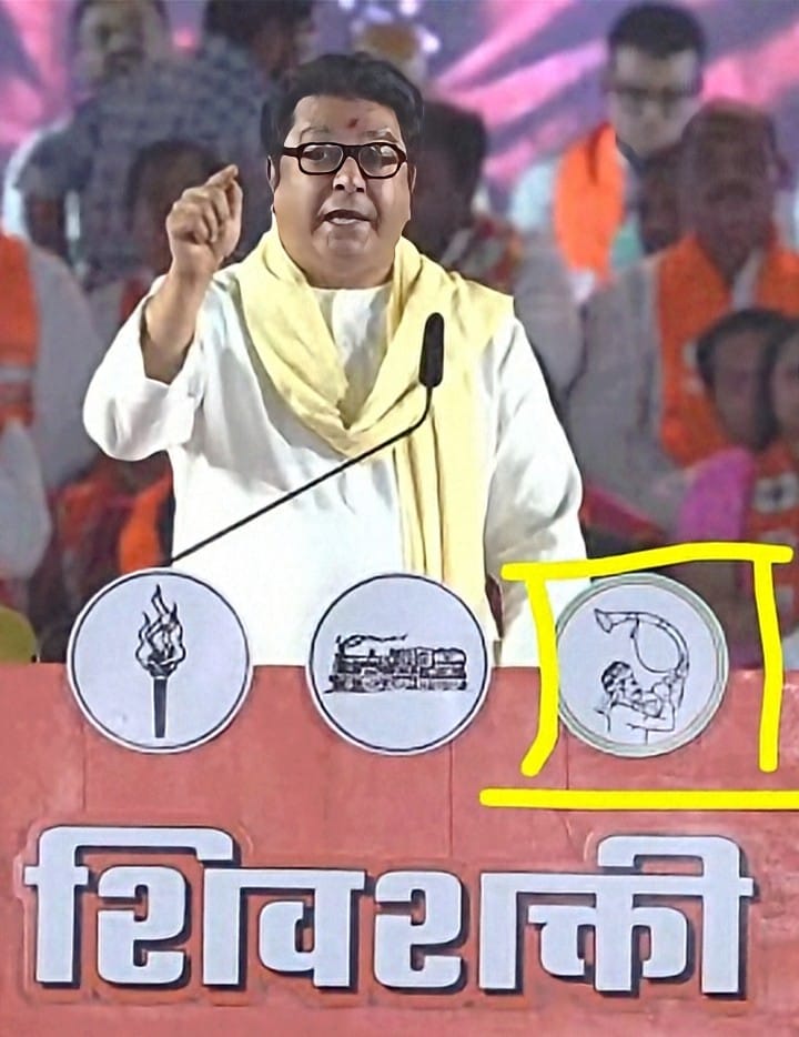मुंबई महापालिका निवडणुकीच्या पार्श्वभूमीवर ठाकरे बंधूंची प्रचंड जाहीर सभा शिवाजी पार्कवर झाली. या सभेला शिवशक्ती असे नाव देण्यात आले शिवसेना मनसे आणि शरद पवारांची राष्ट्रवादी काँग्रेस अशा आघाडीची ही प्रचार सभा होती. त्यामुळे स्टेजवर शिवसेनेचे चिन्ह मशाल मनसेचे चिन्ह रेल्वेचे इंजिन आणि शरद पवारांच्या राष्ट्रवादीचे चिन्ह तुतारीवाला माणूस ही स्टेजवर झळकत होती. सभेच्या मुख्य पोडियमवर सुरुवातीला मशाल चिन्ह होते. मध्ये मनसेचे इंजिन चिन्हा होते, तर डाव्या हाताला शरद पवारांच्या राष्ट्रवादीचे तुतारीवाल्या माणसाचे चिन्ह होते. याच तुतारीवाल्या माणसाचे चिन्ह डाव्या हाताला ठेवून राज ठाकरे यांनी गौतम अदानी यांच्यावर जोरदार तोंडसुख घेतले.