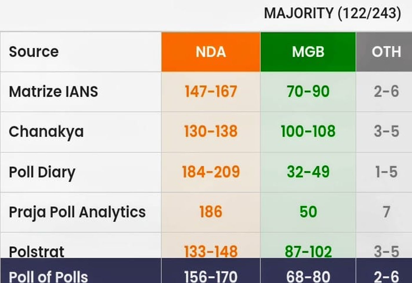 नाशिक : बिहारच्या एक्झिट पोल मध्ये vote chori झाली की काय??, सगळेच NDA चा विजय का दाखवतात??, असा सवाल आज तिथल्या विधानसभा निवडणुकीत मतदान पूर्ण झाल्यानंतर समोर आला. कारण बिहार मधल्या विधानसभा निवडणुकीतले दोन्ही टप्प्यातले मतदान झाल्यानंतर सगळ्या वृत्तवाहिन्यांनी आपापले exit polls जाहीर केले, त्यात सगळ्यांनीच भाजप प्रणित NDA आघाडीचा प्रचंड विजय होईल, असे भाकीत केले. त्यामुळे प्रत्यक्ष निवडणुकींच्या निकालाआधीच सगळ्या वृत्तवाहिन्यांनी vote chori करून exit polls चे निष्कर्ष जाहीर केले की काय??, असा सवाल विचारायची वेळ आली.Bihar’s exit polls??, why is everyone showing NDA’s victory??; Where did the indication come from??
